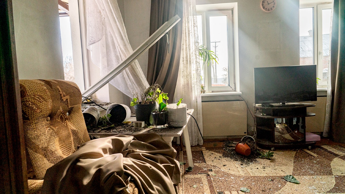 The aftermath of a drone strike in the city of Bohodukhiv in the Kharkiv region that killed four people, including three children, on February 11, 2026 in Bohodukhiv, Ukraine. (Carlo Bravo/Anadolu via Getty Images)