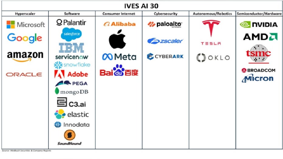 The AI Revolution theme; 30 names to play in the 4th industrial revolution. (Wedbush Securities)