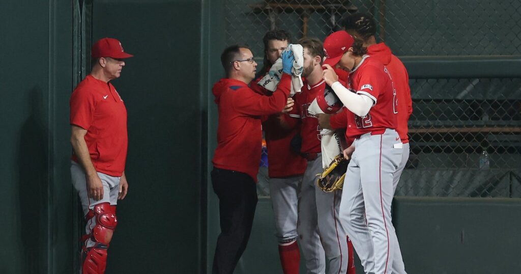 Ward first hit the face in the wall while he followed a lining that was hit by the Ramon Urias van Houston in the eighth inning. While Urias was the second in the second, Ward got up immediately and waved to the angels who challenged help while blood flowed over his face.