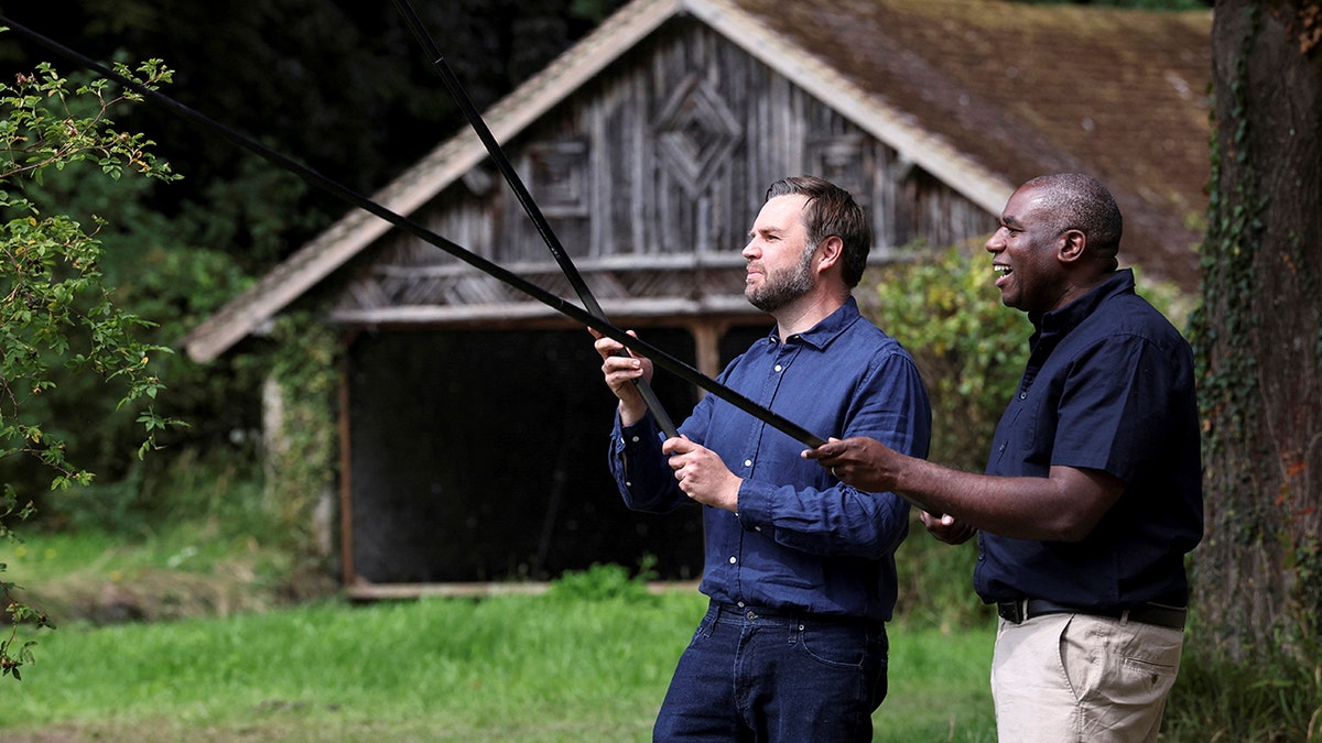 The British Foreign Minister David Lammy Fishes in Kent, England, with the American Vice President JD Vance on 8 August. (Suzanne Plunkett/Pool -Photo via AP)