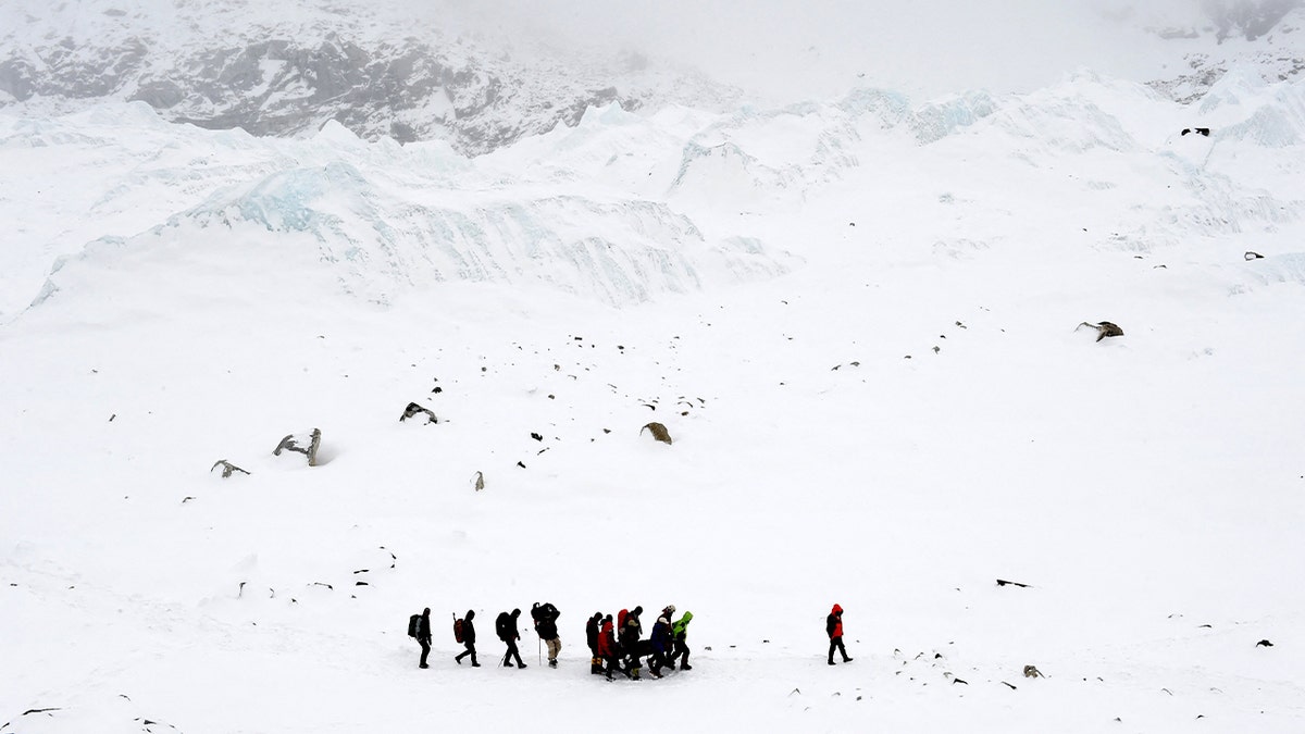 Mount Qomolangma or Mount Everest in Tibet, where a snowstorm is caught up to 1,000 tractors. (HU Guoheng/VCG via Getty images)