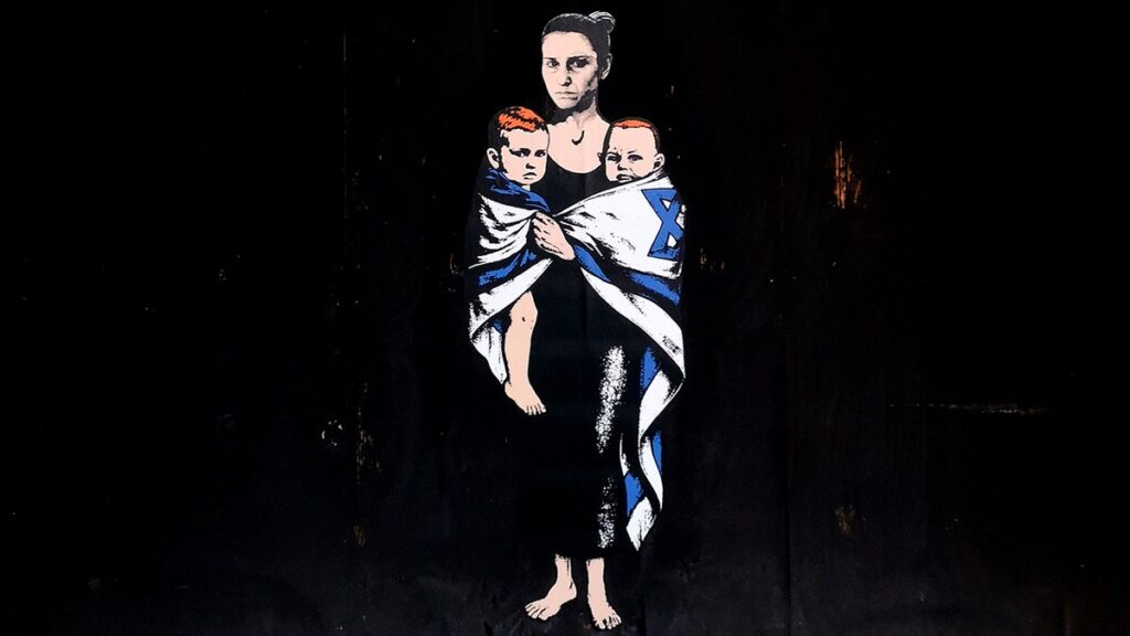 A memorial mural dedicated to Shiri Bibas and her two young sons, Ariel, 4, and Kfir, 10 months, who were kidnapped and brutally murdered by Hamas terrorists while in captivity, was vandalized earlier this month during a memorial service for the victims of the October 7, 2023, attacks.