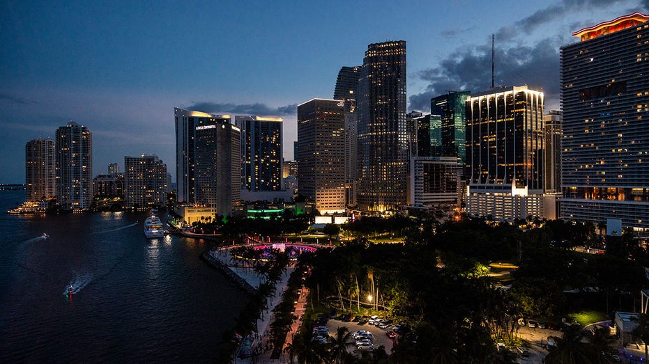 A view of the Biscayne Bay and the Skyline in the center of Miami in Florida. (Jeffrey Greenberg/UCG/Universal Images Group via Getty Images/Getty images)