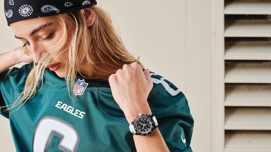 A fan of Philadelphia Eagles is wearing a Breitling watch as part of a new partnership with NFL. (Breitling)
