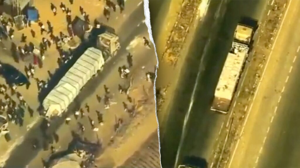 The video, released by the US Central Command, shows suspected Hamas operatives attacking the driver of an emergency truck, dragging him into the median and then fleeing with the vehicle and its cargo. (US CENTCOM via X)