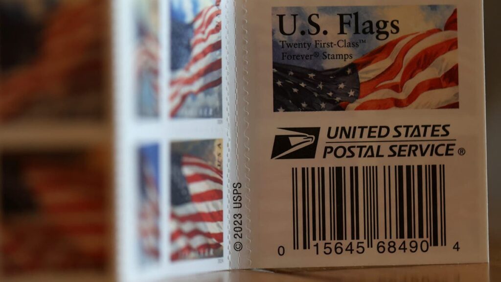 In this photo illustration US Postal Service Forever Stamps are displayed on July 12, 2024, in San Anselmo, California. (Justin Sullivan/Getty images)