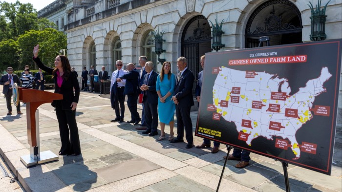 The American agricultural secretary Brooke Rollins said on Tuesday that the administration would collaborate with national and local authorities to “take rapid legislative and executive action to ban the purchase of American agricultural land by Chinese nationals and other foreign opponents”.